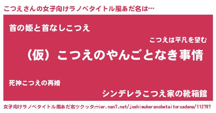 | 男性向けラノベタイトル風あだ名 | 『こつえの憂鬱』『はたらくこつえさま!』 |