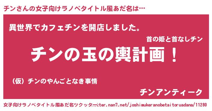 | 男性向けラノベタイトル風あだ名 | 『転生したらチンだった件』『チンの憂鬱』 |