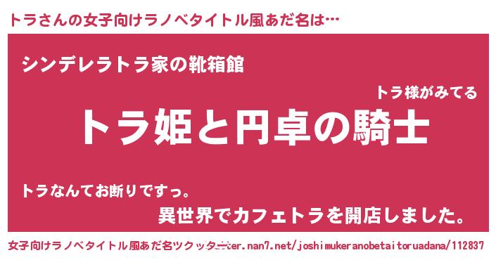 | 男性向けラノベタイトル風あだ名 | 『トラの憂鬱』『冴えないトラの育てかた』 |