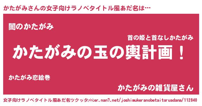 | 男性向けラノベタイトル風あだ名 | 『転生したらかたがみだった件』 |