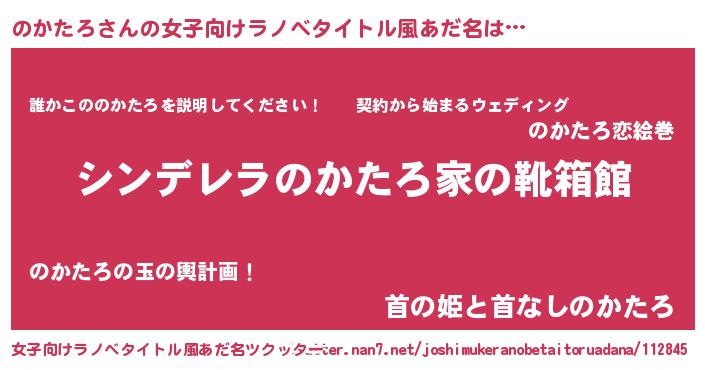 | 男性向けラノベタイトル風あだ名 | 『冴えないのかたろの育てかた』 |