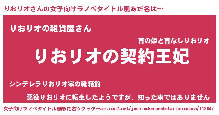 | 男性向けラノベタイトル風あだ名 | 『誰もが恐れるあのりおリオが、ぼくの専属メイドになるようです。』 |