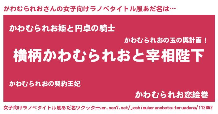 | 男性向けラノベタイトル風あだ名 | 『かわむられおに滅ぼされるだけの簡単なお仕事です』 |