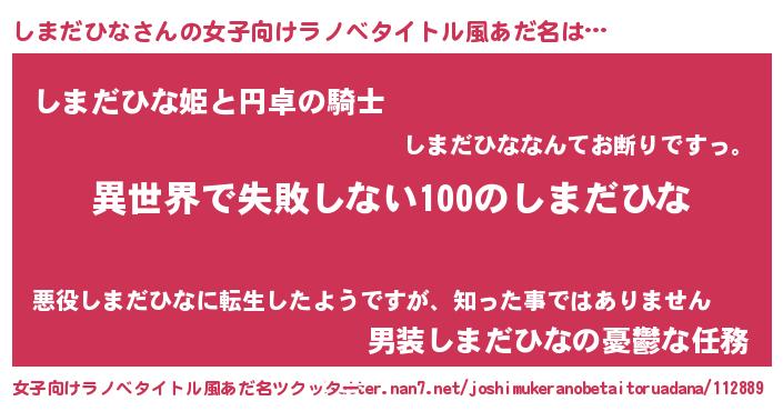| ヘコむあだ名 | 『しまだひな(笑)』『しまにー』 |