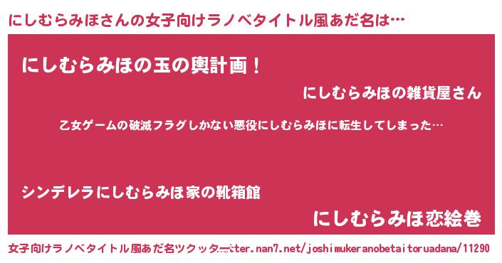 | 伝説のあだ名 | 『魔王と互角に渡り合う占い師にしむらみほ』 |