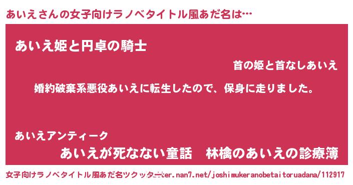 | 男性向けラノベタイトル風あだ名 | 『アイエスレイヤー』『魔弾の王とあいえ』 |