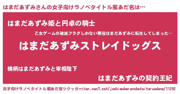 | 男性向けラノベタイトル風あだ名 | 『Re:はまだあずみから始める異世界生活』 |
