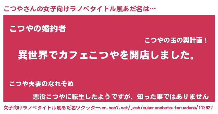 | 男性向けラノベタイトル風あだ名 | 『誰もが恐れるあのこつやが、ぼくの専属メイドになるようです。』 |
