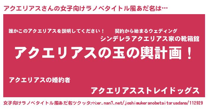 | 胡散臭い通販商品みたいなあだ名 | 『億万長者になれるブレスレット…その名も「アクエリアス」』 |
