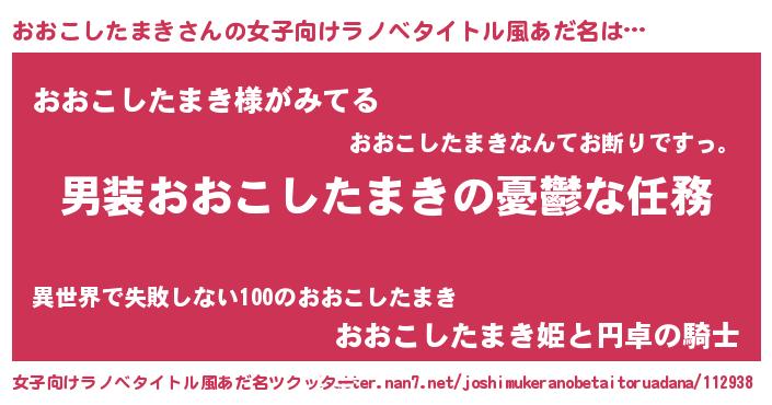 | 男性向けラノベタイトル風あだ名 | 『うちのおおこしたまきが世界を掌握している!』 |