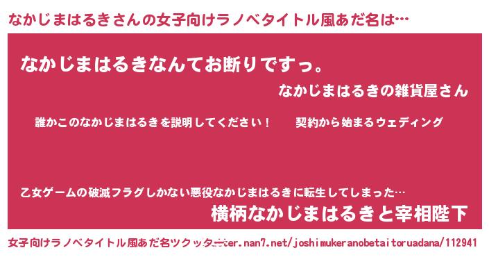 | 男性向けラノベタイトル風あだ名 | 『ナカジマハルキアートオンライン』 |