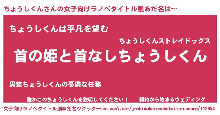 | 男性向けラノベタイトル風あだ名 | 『はたらくちょうしくんさま!』 |