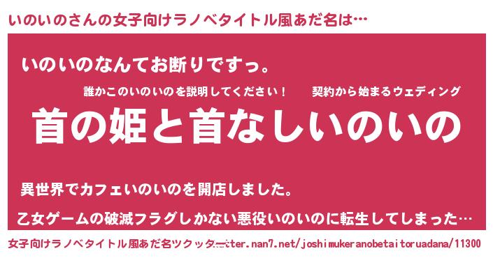 | 男性向けラノベタイトル風あだ名 | 『はたらくいのいのさま!』 |