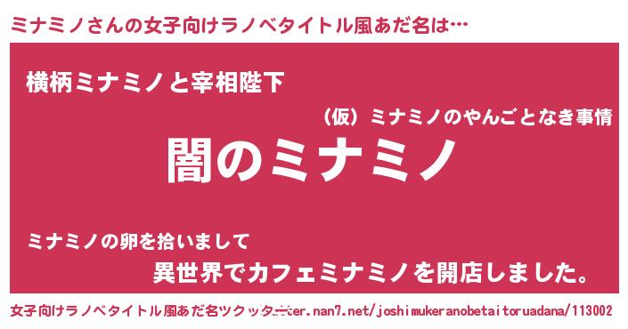 | ヘコむあだ名 | 『ミナミノ(震え声)』『ミナにゅー』 |