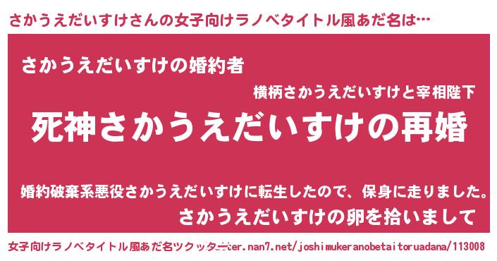 | ヒーロー風カッコイイあだ名 | 『慈愛の使者さかうえだいすけ』 |
