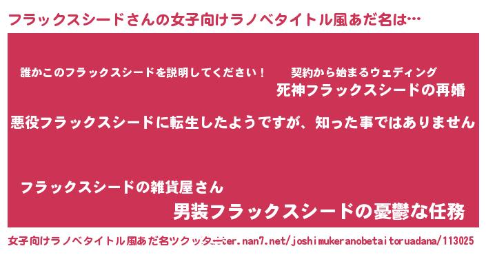 | 男性向けラノベタイトル風あだ名 | 『この素晴らしい世界にフラックスシードを!』 |