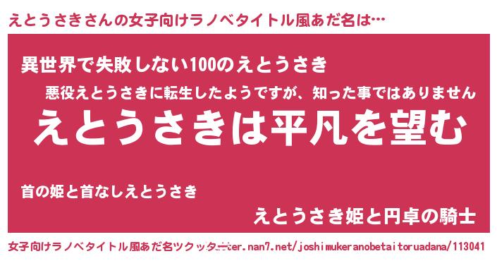 | 男性向けラノベタイトル風あだ名 | 『ダンジョンにえとうさきを求めるのは間違っているだろうか』 |