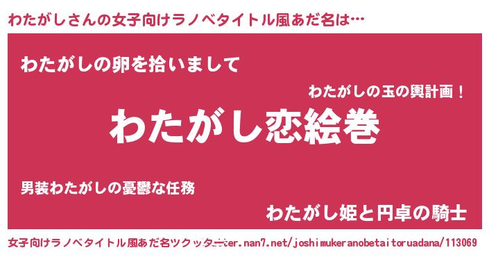 | ヒーロー風カッコイイあだ名 | 『慈愛の使者わたがし』『幻影騎士ワタ』 |