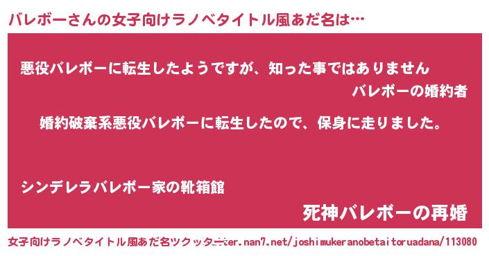 | 男性向けラノベタイトル風あだ名 | 『バレボースレイヤー』 |
