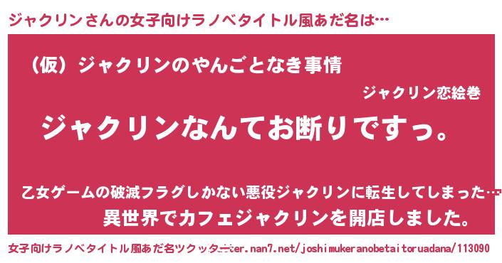 | 意味不明あだ名 | 『自称ジャクリン』『ペロリンジャクリン』 |