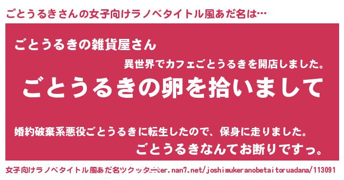 | 胡散臭い通販商品みたいなあだ名 | 『伝統あるサプリメント…その名も「ごとうるき」』 |
