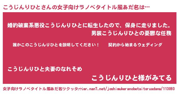 | 男性向けラノベタイトル風あだ名 | 『コウジンリヒトアートオンライン』 |