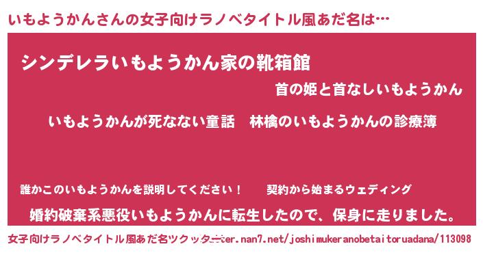 | 男性向けラノベタイトル風あだ名 | 『魔弾の王といもようかん』 |