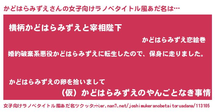 | 男性向けラノベタイトル風あだ名 | 『カドハラミズエスレイヤー』 |