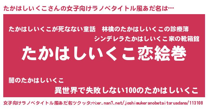 | 男性向けラノベタイトル風あだ名 | 『ノーゲーム・ノータカハシイクコ』 |