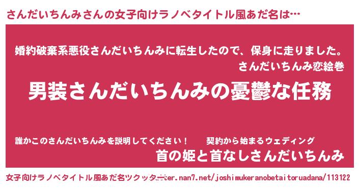 | ヒーロー風カッコイイあだ名 | 『慈愛の使者さんだいちんみ』 |