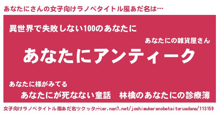 | 意味不明あだ名 | 『自称あなたに』『永久保存あなたに』 |
