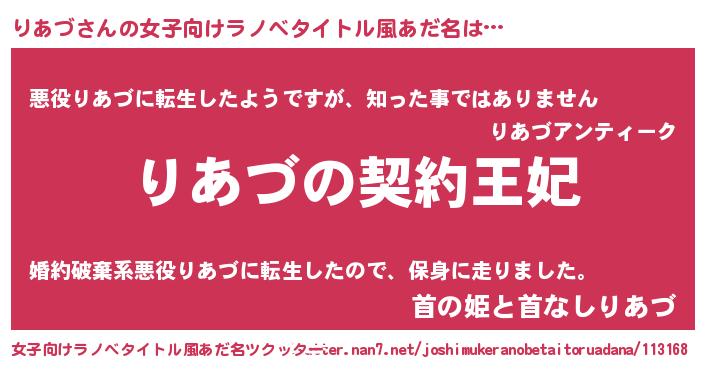 | 胡散臭い通販商品みたいなあだ名 | 『来世でも幸せになれる健康食品…その名も「りあづ」』 |