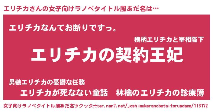 | 胡散臭い通販商品みたいなあだ名 | 『来世でも幸せになれる健康食品…その名も「エリチカ」』 |