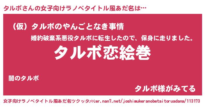 | ヘコむあだ名 | 『タルにゅー』『タル太郎』 |