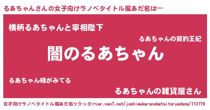 | 男性向けラノベタイトル風あだ名 | 『Re:るあちゃんから始める異世界生活』 |