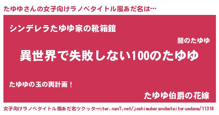 | 男性向けラノベタイトル風あだ名 | 『たゆゆという概念が存在しない退屈な世界 』 |
