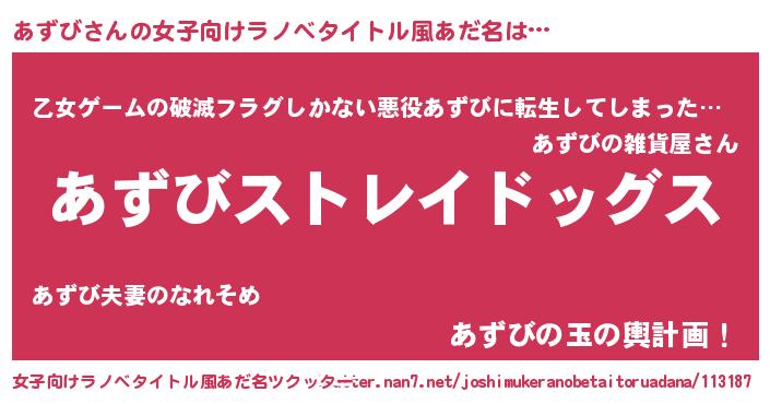 | ファンタジー風あだ名 | 『ゼアズトゥ』『ヴァルアズーナ』 |