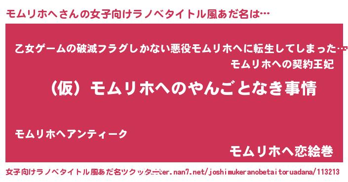 | 男性向けラノベタイトル風あだ名 | 『モムリホヘの憂鬱』 |