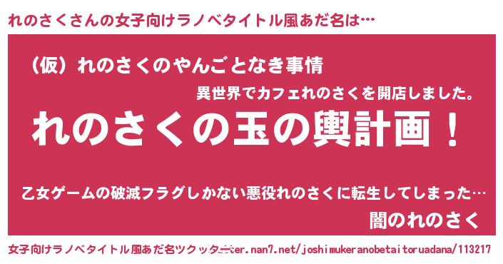 | 男性向けラノベタイトル風あだ名 | 『転生したられのさくだった件』 |