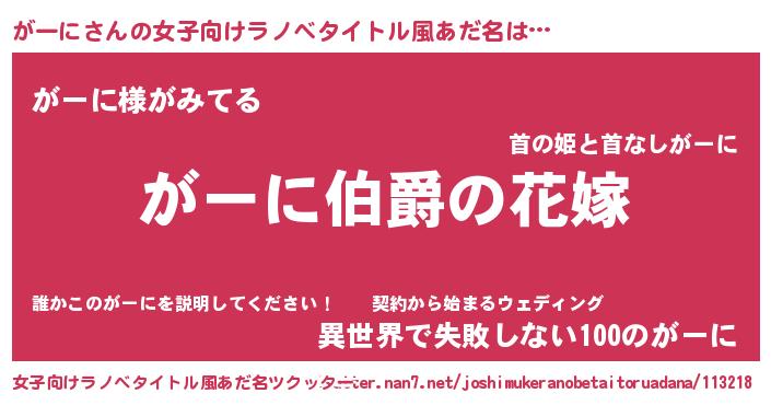| 胡散臭い通販商品みたいなあだ名 | 『世界が平和になる高級そうな絵画…その名も「がーに」』 |