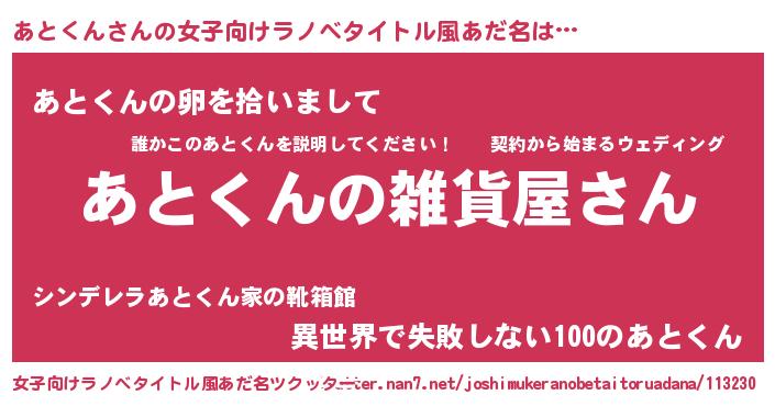 | 男性向けラノベタイトル風あだ名 | 『やはりあとくんの青春ラブコメはまちがっている 』 |