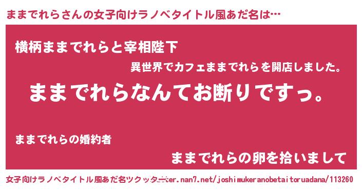 | 意味不明あだ名 | 『自称ままでれら』『永久保存ままでれら』 |
