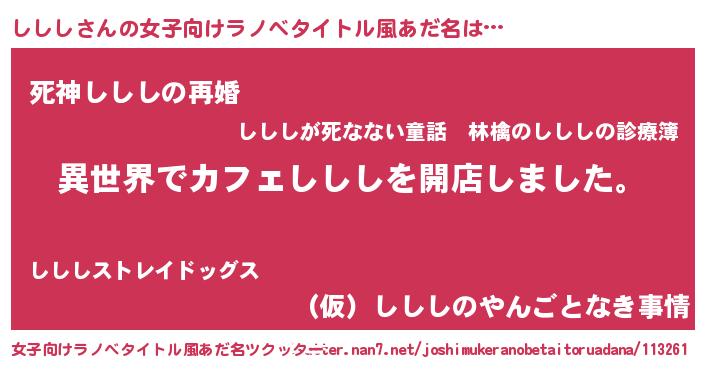 | ヘコむあだ名 | 『ししし(笑)』『ししにー』 |