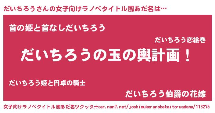 | 男性向けラノベタイトル風あだ名 | 『だいちろう~年齢イコール彼女いない歴の魔法使い~』 |