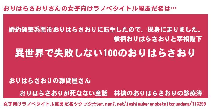 | 男性向けラノベタイトル風あだ名 | 『おりはらさおりという概念が存在しない退屈な世界 』 |