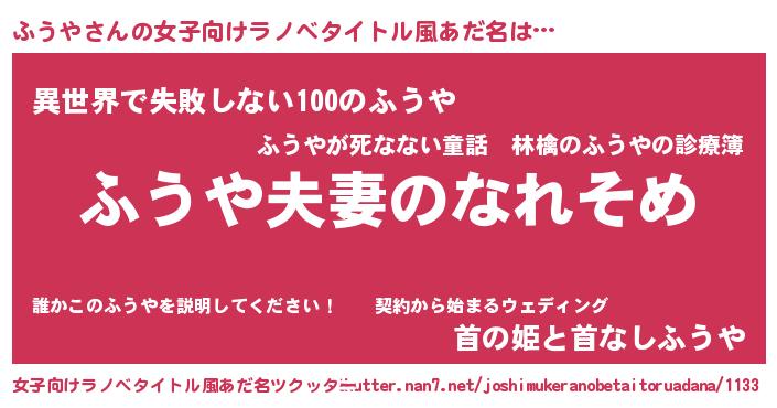 | 男性向けラノベタイトル風あだ名 | 『おまえをオタクにしてやるから、俺をふうやにしてくれ! 』 |