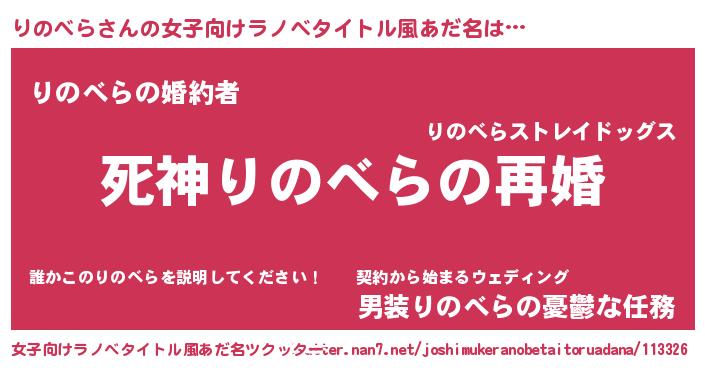 | 男性向けラノベタイトル風あだ名 | 『ノーゲーム・ノーリノベラ』 |