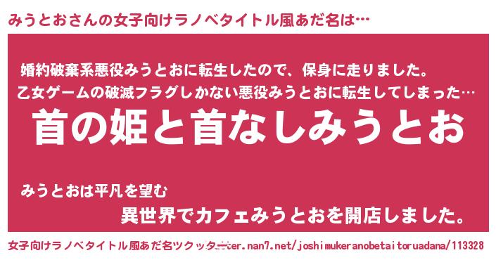 | 伝説のあだ名 | 『古より伝わる吟遊詩人みうとお』 |