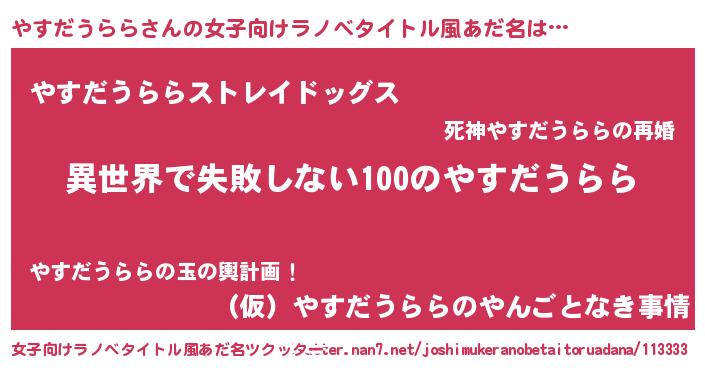 | 男性向けラノベタイトル風あだ名 | 『やすだうららという概念が存在しない退屈な世界 』 |
