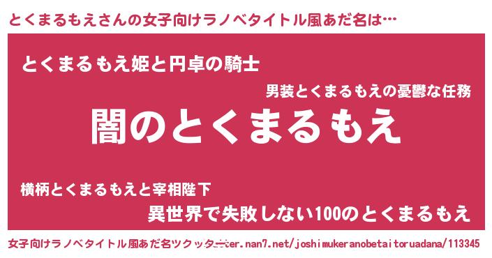 | 男性向けラノベタイトル風あだ名 | 『Re:とくまるもえから始める異世界生活』 |
